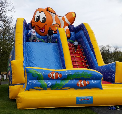 Obří nafukovací skluzavka pro max. 15 dětí ve věku do 13 let pod dozorem obsluhy.