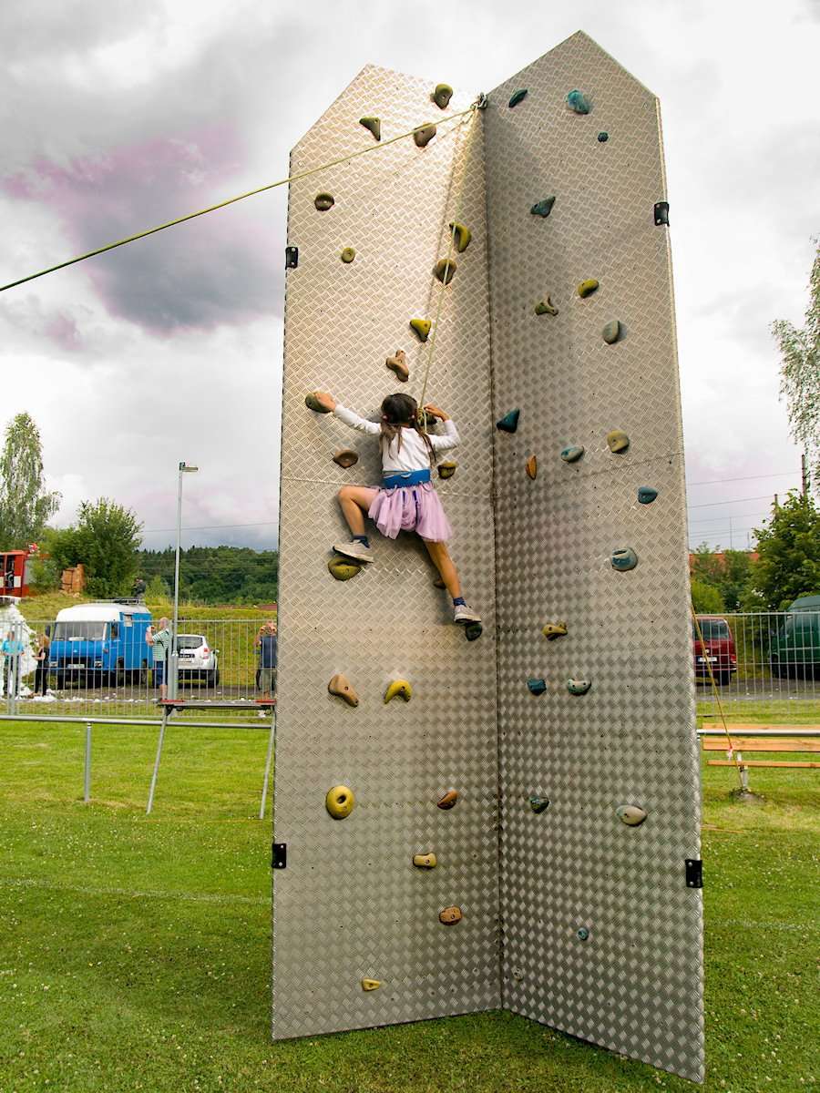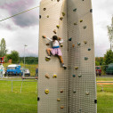 Mobilní horolezecká stěna nabízí bezpečné zdolání vrcholu stěny za použití několika možných tras s lanovým jištěním naší obsluhy. Ke stoupání potřebujete pouze uzavřenou obuv, helmu a sedák Vám zdarma zapůjčíme.